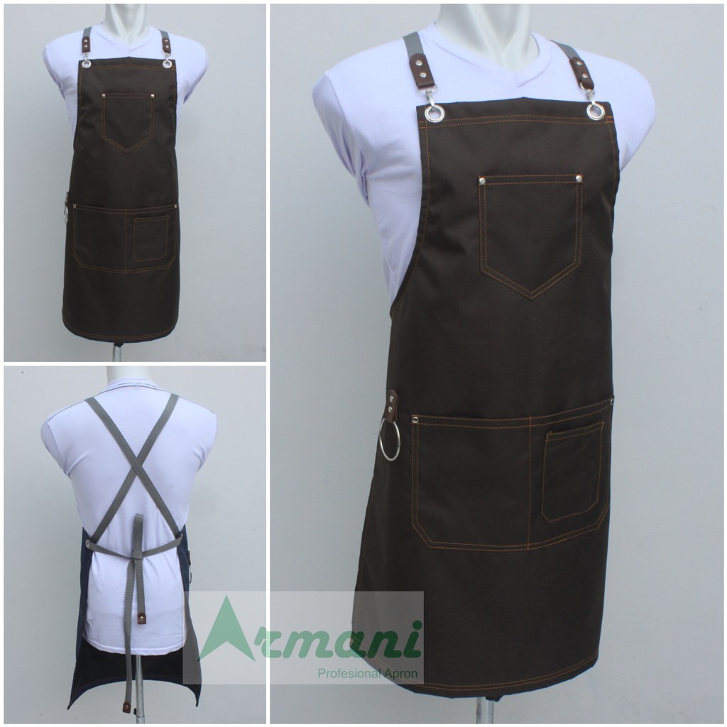 Tampilan yang simple dan elegan membuatnya sangat cocok untuk digunakan dibalik meja bar. Antique brass hardware anti karat. Soft gabardine apron or apron with less thick and less thick to wear This product excess.