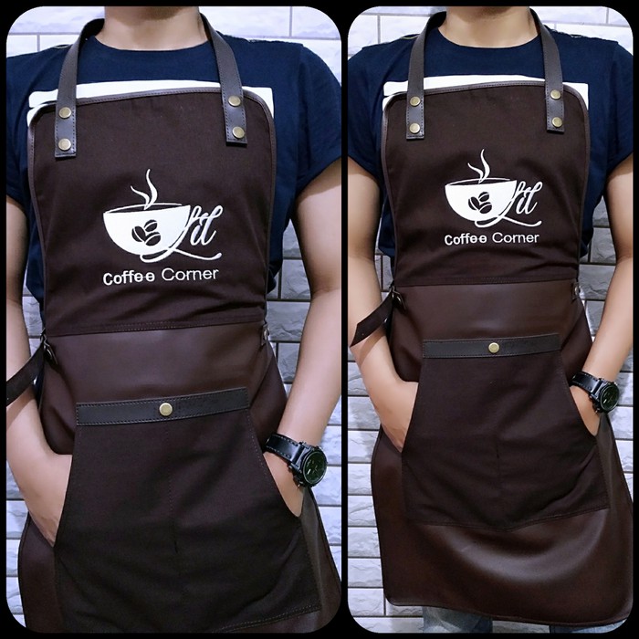 Full Apron Celemek Kombinasi Kanvas Coffee Dan Kulit Sintetis Coffee Shopee Indonesia